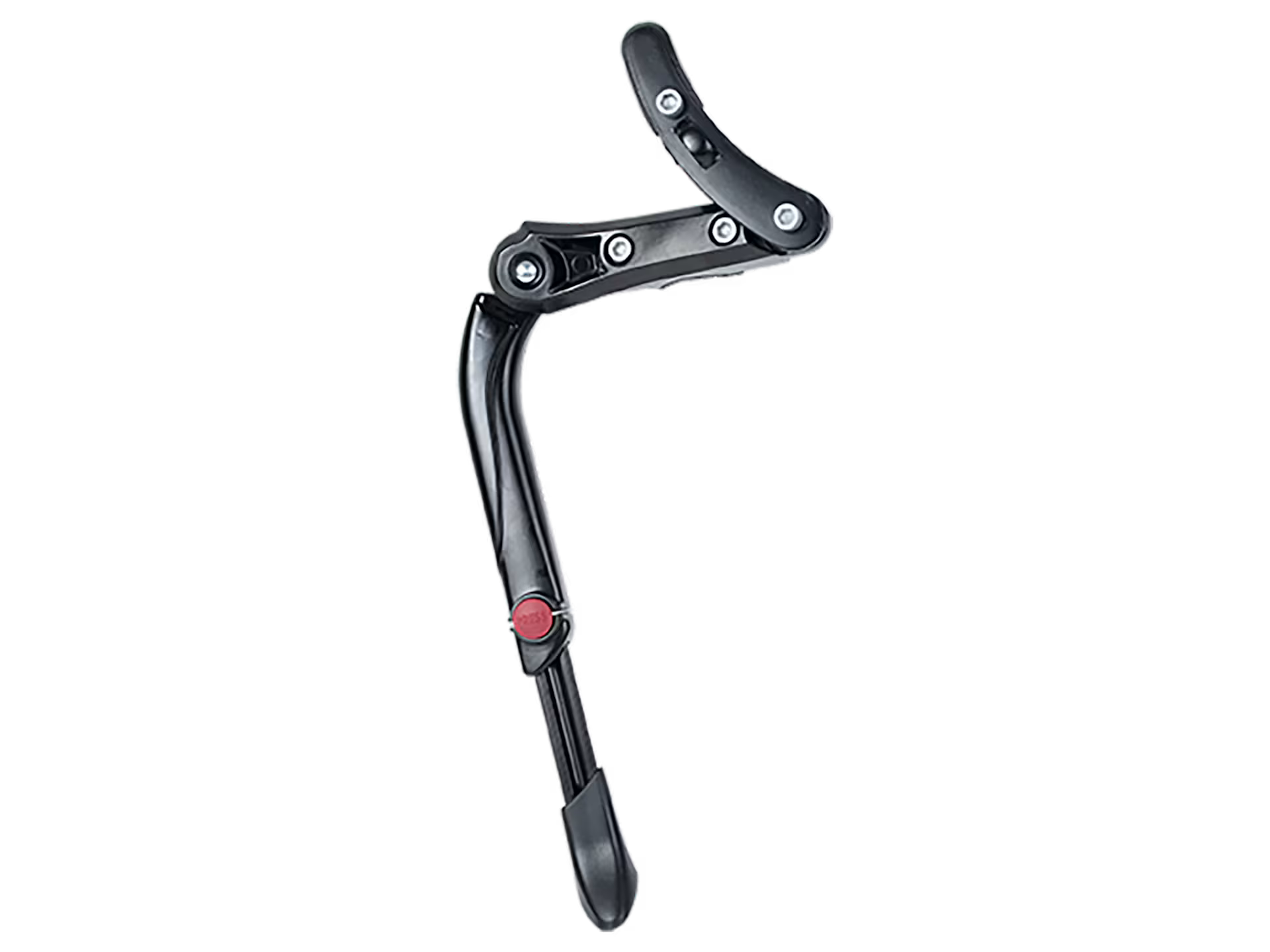 An adjustable rear-mount kick stand that fits bikes of all sizes, from 24 inch to 29 inch wheels.