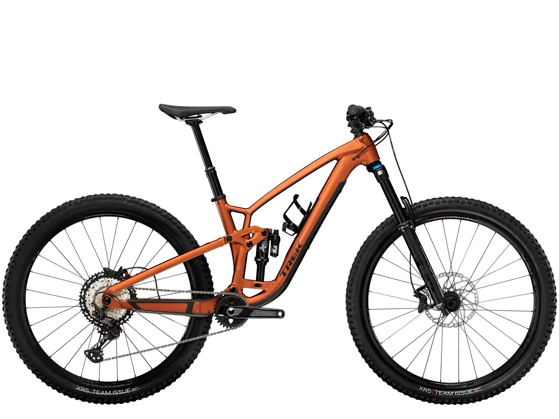 Fuel EX 8 is a dialed trail bike for riders who chase down rowdy descents and want a bike that's happy to pedal back to the top and do it again. It has a stout alloy frame and an upgraded Shimano XT drivetrain for smooth precise shifting. The 150mm Fox Rhythm fork makes easy work of rocks and roots while the Fox Float X shock keeps you in control. New in frame storage and adjustable geometry give you all the perks that come with the carbon model, but without the lofty price tag.
